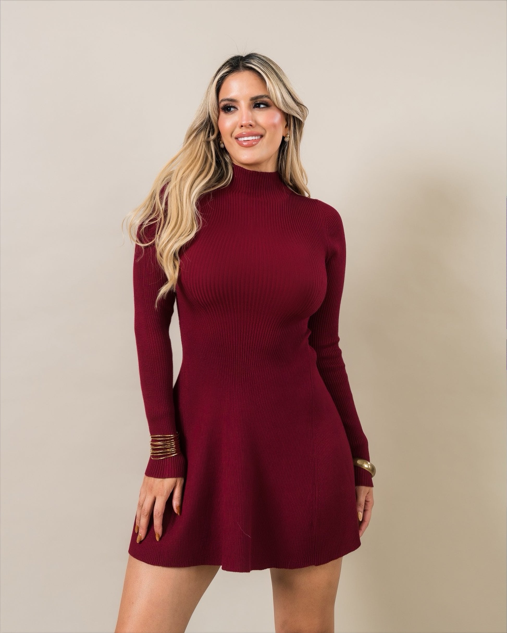 VESTIDO BURGUNDY DE PUNTO CORTE A